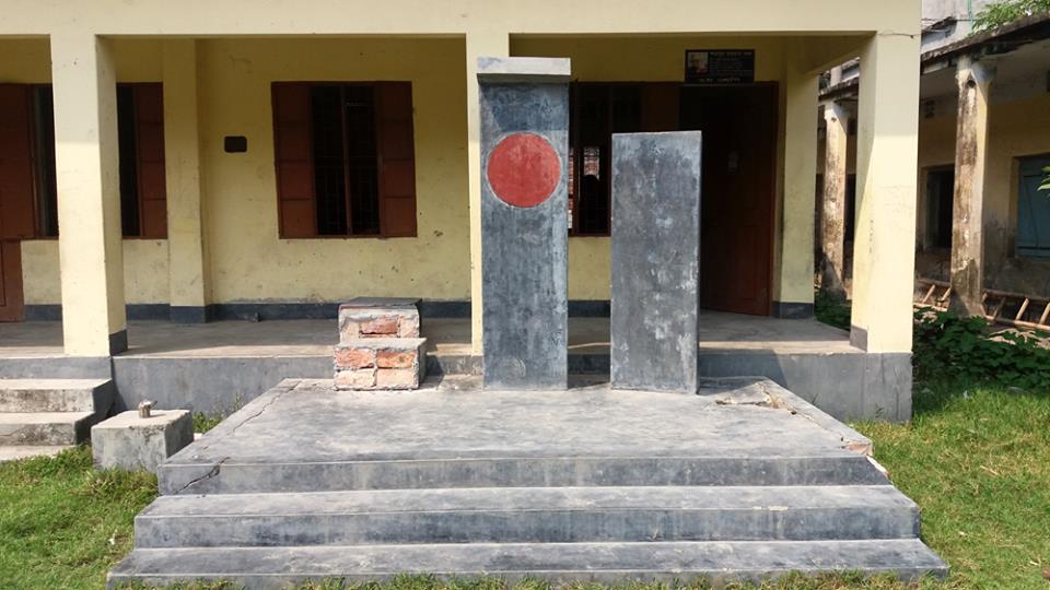 গেলো রাতের কোনো এক সময় কে বা কারা শহীদ মিনার ভাঙচুর করেছে বলে ধারণা শিক্ষকদের।