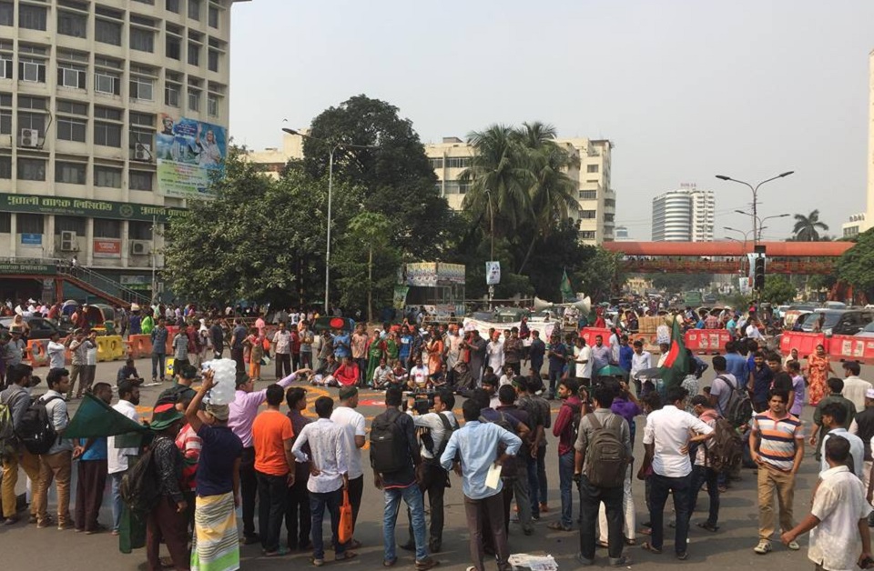 অবস্থান কর্মসূচির কারণে মতিঝিল বা মৎস্য ভবন থেকে শিশুপার্ক হয়ে গাড়ি চলাচল করতে পারছে না। সায়েন্সল্যাব থেকে মতিঝিলমুখী গাড়িগুলো শাহবাগে এসে হোটেল ইন্টারকন্টিনেন্টাল হয়ে যাচ্ছে। কারওয়ানবাজার থেকে মতিঝিল, যাত্রাবাড়ীগামী গাড়িগুলোও শাহবাগ দিয়ে না যেতে পেরে হোটেল ইন্টারকন্টিনেন্টালের পাশ দিয়ে চলে যাচ্ছে কাকরাইলের দিকে।