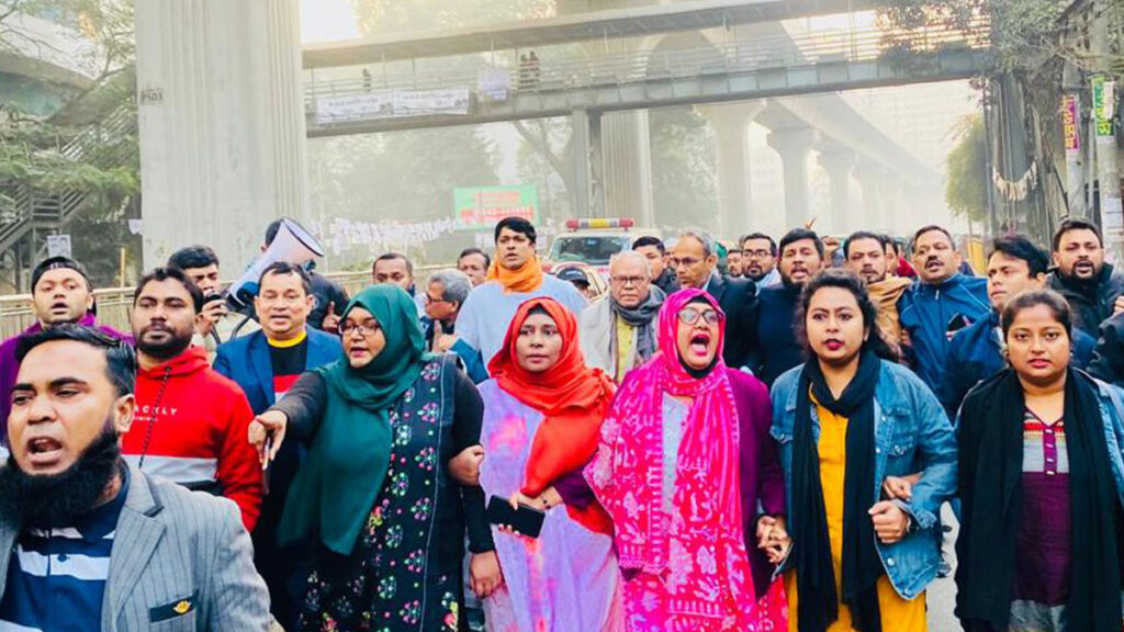 শনিবার (৬ জানুয়ারি) সকাল সাড়ে সাতটার দিকে রাজধানীর শাহবাগ মোড় থেকে মিছিল শুরু করে বাংলামোটরে এসে শেষ করে বিএনপি নেতাকর্মীরা। এ সময় টায়ারে আগুন জ্বালিয়ে বিক্ষোভ ও পিকেটিং করে তারা।