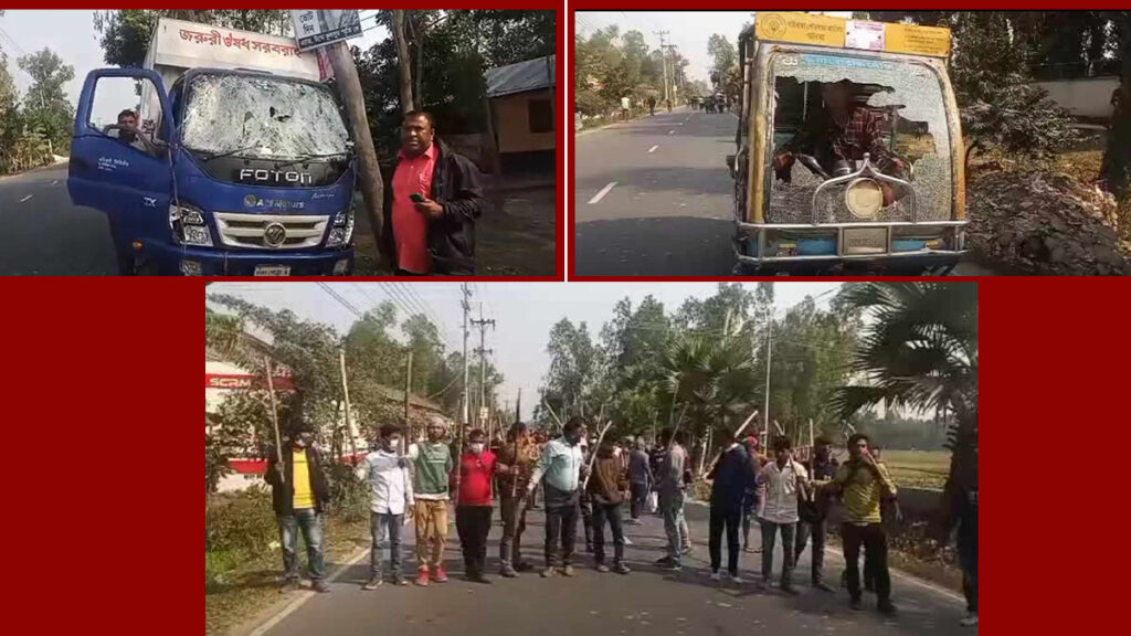 অভিযোগ, পরে মিছিল থেকে গাইবান্ধা-পলাশবাড়ী আঞ্চলিক মহাসড়কে ঔষধ সরবরাহকারী একটি কাভার্ড ভ্যান ও একটি ব্যাটারিচালিত অটোরিকশা ভাঙচুরের ঘটনা ঘটে।