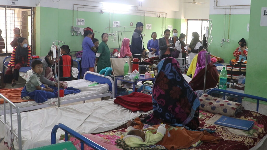 পার্বত্য জেলা খাগড়াছড়িতে জেঁকে বসেছে শীত। ঘন কুয়াশা কাটছেনা দিনে দুপুরেও। সূর্যের দেখা না মেলায় দিনের দিনের উত্তাপ কমছে। শহর ছাড়িয়ে প্রত্যন্ত এলাকা যেন জবুথবু অবস্থা। শীতের তীব্রতার সাথে পাল্লা দিয়ে বাড়ছে শীতজনিত রোগ। জ্বর, সর্দি-কাশি, নিউমোনিয়া, ব্রঙ্কিউলাইটিস, চর্মরোগ, শ্বাসকষ্ট ও ডায়রিয়াসহ শীতজনিত রোগে আক্রান্ত হচ্ছে শিশু থেকে বয়স্ক সব বয়সের মানুষ। চাপ বেড়েছে হাসপাতালে।