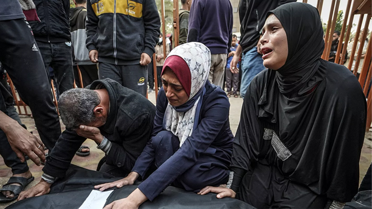 ভাইকে হারিয়ে শোক করছেন দুই ফিলিস্তিনি বোন। ছবি: ইউরো নিউজ।