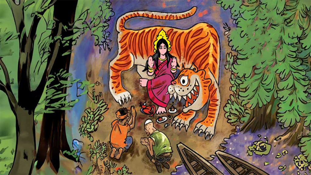 হাতঘড়িতে দেখলাম, আজকের দিনটাও ঠিক ৩ জানুয়ারি। পীরেন স্নালের মৃত্যুবার্ষিকী। তারে দেখলাম, হাতে থাকা গাছের ডাল কবরের মতো দেখতে একটা জায়গায় পুইতা রাখল। নিজের গা থেইকা রক্তিম জবার মতো একটা পালক খুইলা সেইটাও পুইতা দিল মাটিতে। সেই পালক হয়তো কোনো ফিনিক্স পাখির, হয়তো ডানা ভাঙ্গা কোনো শালিকের। সেই ভাঙ্গা ডাল হয়তো কোনো বটবৃক্ষের অথবা অশ্বত্থ মহীরুহের। তারে উইঠা দাঁড়াইতে দ্যাখা গেল। এই মুহূর্তে মনে হইতেসে, সে নিছক কোনো বালক না; সে সাক্ষাৎ বনবিবি! বন রক্ষার কাণ্ডারি। আমাদের গাড়ির চারপাশে স্লো মোশনে বনবিবির মতো হাঁটতে লাগল। এখন আমার মনে তার জন্য আর কোনো ভয় কাজ করতেসে না। বরং আমার চোখ দিয়া অপলকে জল গড়ায়া পড়ল। খেয়াল করলাম, যে জায়গাটায় আমরা আটকা পড়সি, সেইটা আদতে মধুপুর গড় (আমরা টাঙ্গাইলেই আইসিলাম)। পীরেন স্নালের আবাসভূমি। এইখানে শালবনে বন রক্ষার আন্দোলন করতে গিয়া তার জান নেয়া হইসিল। দূরে শালের সারি আমের কুড়ির মতো সদ্য ফুইটা উঠল যেন।