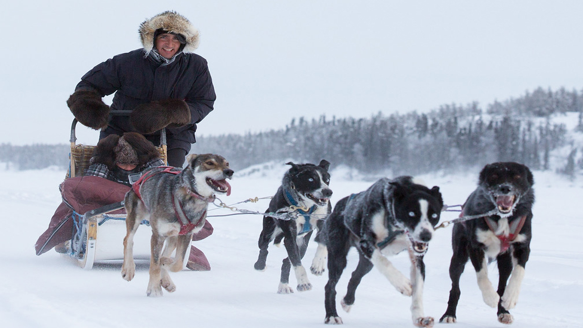 কুকুরের টানা স্লেজ গাড়ি চালাচ্ছেন জাস্টিন ট্রুডো। ছবি: মন্ট্রিল গেজেট।