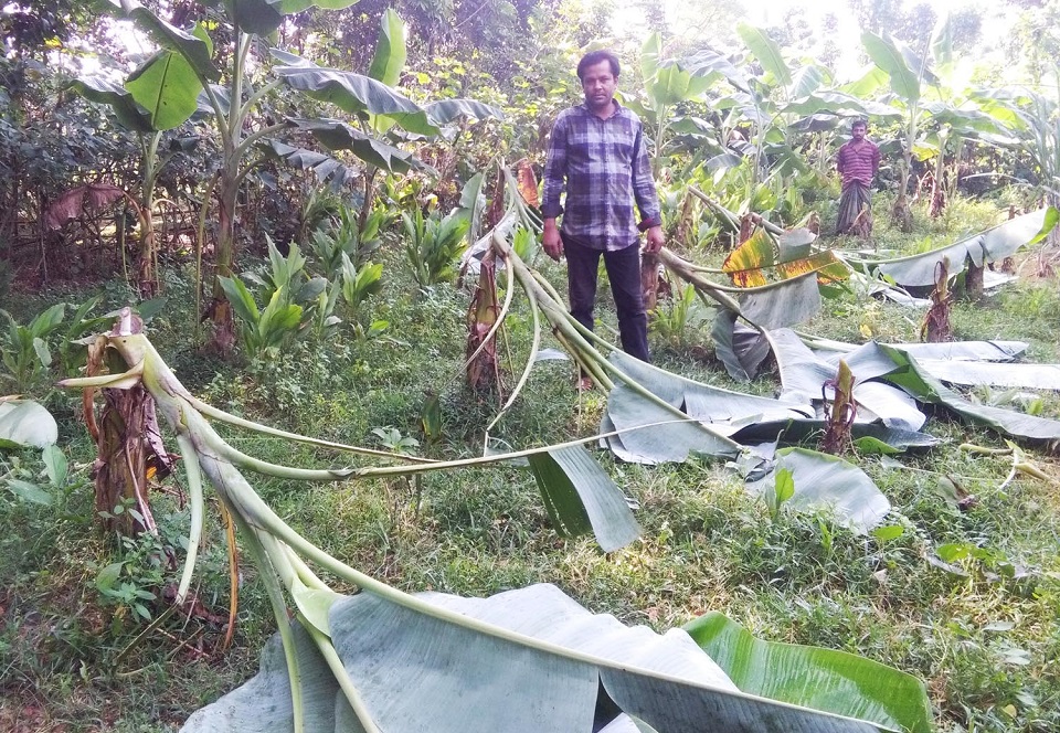 কৃষক সাহেব আলী জানান, তিনি বলিদাপাড়া গ্রামের দুই বিঘা জমির এক পাশে ৩ মাস আগে ৯০টি কলাগাছ লাগান। কলাগাছ গুলো অনেক বড় হয়েছে। কয়েকদিন পর গাছে ফল ধরবে। সোমবার রাতে দুর্বৃত্তরা তার লাগানো ৭৮টি কলাগাছ মাজা থেকে কেটে দিয়েছে।