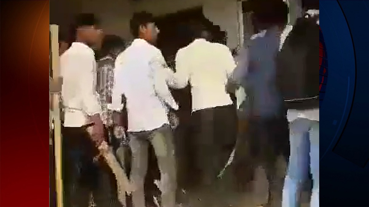 লাঠিসোটা হাতে মারধরকারীরা। ছবি- ভিডিও থেকে নেয়া