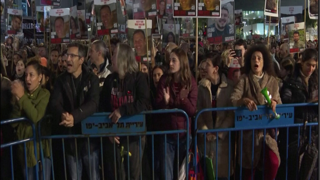 হামাসের হাতে বন্দিদের অবিলম্বে মুক্তির দাবিতে আবারও ব্যাপক বিক্ষোভ হয়েছে ইসরায়েলে। শনিবার (১৭ ফেব্রুয়ারি) রাজধানী তেলআবিবে জড়ো হয় হাজার হাজার মানুষ।
