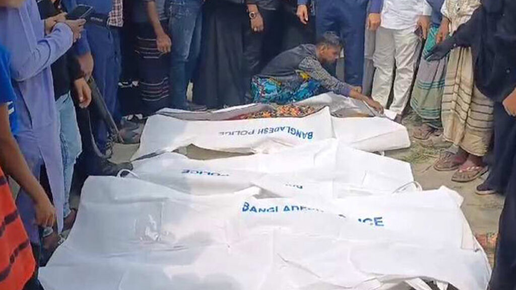 নিহতরা হলেন- সায়মা বেগম (৩৩), তার মেয়ে ছাইমুনা (১১) ও ছেলে তাওহীদ (৭)। নিহত সায়মা বেগমের স্বামী আলী মিয়া সৌদি প্রবাসী।