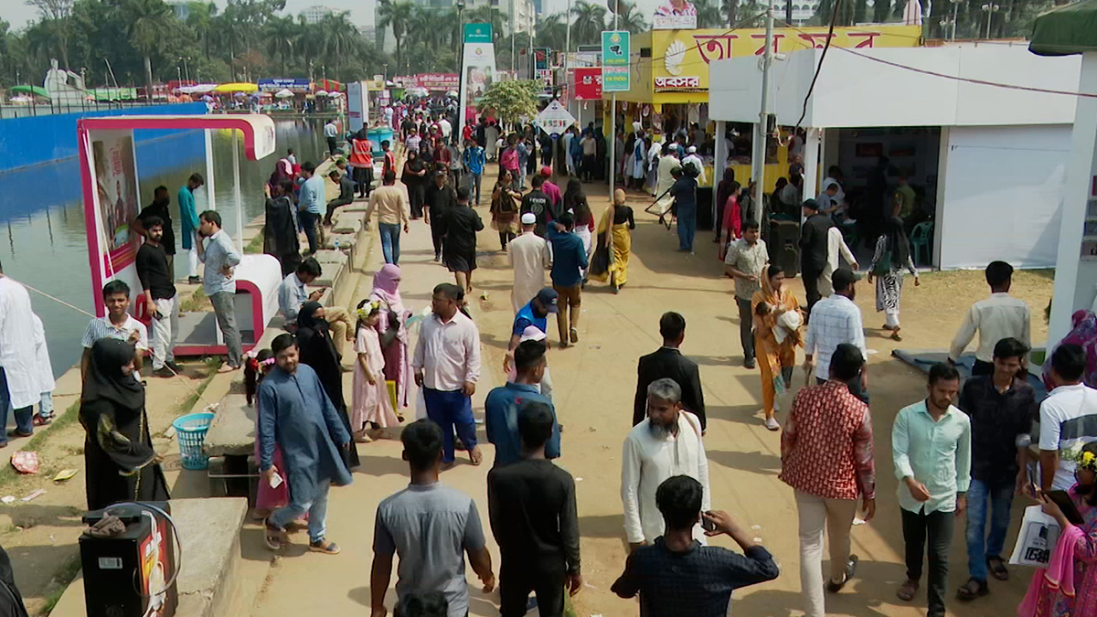 মাসব্যাপী অমর একুশে বইমেলার বাকি মাত্র দু’দিন। শেষ সময়ে, পাঠক-ক্রেতাদের আনাগোনা বেড়েছে কয়েকগুণ। স্টল থেকে স্টলে ঘুরে কিনছেন পছন্দের বই।