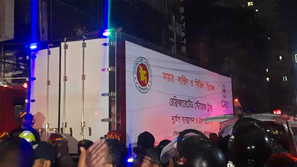 রাজধানীর বেইলি রোডে বহুতল ভবনে লাগা আগুনের ঘটনায় এখন পর্যন্ত ৪৬ জনের প্রাণহানি ঘটেছে। তাদের মধ্যে ৫ জনকে শনাক্ত করা যায়নি। শনাক্তদের মধ্যে ৩৮ জনের মরদেহ পরিবারের কাছে হস্তান্তর করা হয়েছে। আরও ২ জনের মরদেহ হস্তান্তরের প্রক্রিয়া চলছে।