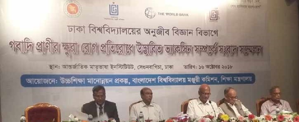 বিকেলে গবাদি পশুর ক্ষুরা রোগ প্রতিরোধে উদ্ভাবিত ভ্যাকসিন সম্পর্কে এক সংবাদ সম্মেলনে এসব তথ্য জানান শিক্ষামন্ত্রী নুরুল ইসলাম নাহিদ। রাজধানীর মাতৃভাষা ইনস্টিটিউটে ঢাকা বিশ্ববিদ্যালয়ের অনুজীব বিজ্ঞান বিভাগের উদ্যোগে এই আয়োজন করা হয়। এসময় টিকা উদ্ভাবক টিমের প্রধান বলেন, ক্ষুরা রোগের কারণে বাংলাদেশে আর্থিক ক্ষতির পরিমাণ প্রায় ১২৫ মিলিয়ন ডলার। কিন্তু অর্থ ব্যয় করার পরও টিকার মধ্যে পর্যাপ্ত পরিমাণ এন্টিজেন ব্যবহার না করার ফলে অকার্যকর হয়। তবে নতুন টিকার দাম মাত্র ৬০ টাকা।