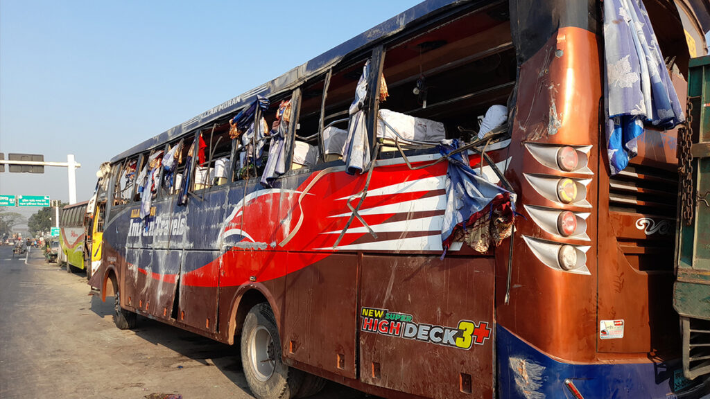 ভাঙ্গা ফায়ার সার্ভিসের স্টেশন ম্যানেজার আবু জাফর জানান, বরিশাল থেকে ছেড়ে আসা ইমরান ট্রাভেলস নামের গাড়িটি ঢাকার দিকে যাচ্ছিল। রাস্তায় নিয়ন্ত্রণ হারিয়ে উল্টে গেলে বাসটি দুমড়ে মুচড়ে যায়। আহতদেরকে উদ্ধার করে ভাঙ্গা হাসপাতালে নেয়া হয়েছে।