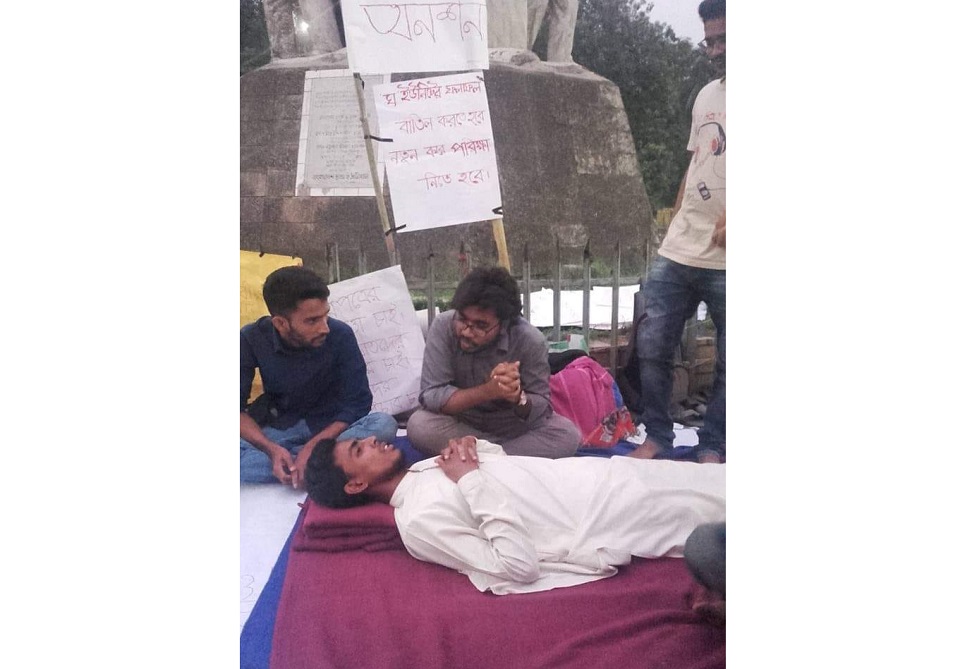 ঢাকা বিশ্ববিদ্যালয়ের ‘ঘ’ ইউনিটের ভর্তি পরীক্ষায় প্রশ্ন ফাঁসের প্রতিবাদে আজো অনশন অব্যাহত রেখেছেন আইন বিভাগের শিক্ষার্থী আখতার হোসেন। ভর্তি প্রক্রিয়া বাতিলসহ চার দাবিতে গতকাল দুপুর থেকে বিশ্ববিদ্যালয়ের রাজু ভাস্কর্যের পাদদেশে আমরণ অনশন শুরু করেন ওই শিক্ষার্থী।