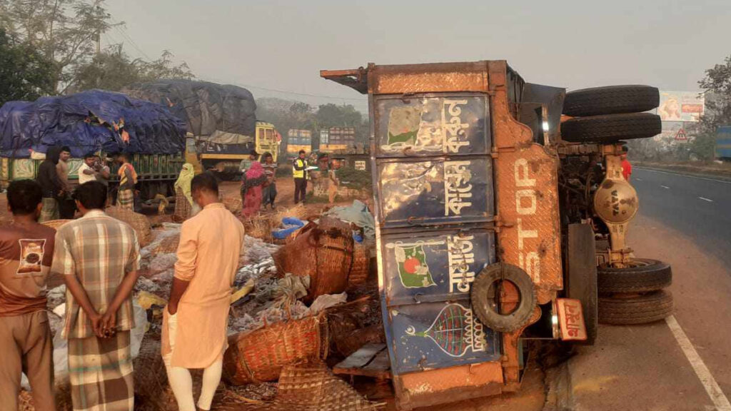 ওসি জানান, নোয়াখালী থেকে ঢাকামুখী মাছবাহী ট্রাকটি রাস্তার পাশে দাঁড়িয়ে থাকা একটি ট্রাকে ধাক্কা দিয়ে উল্টে যায়। এতে ট্রাকে থাকা চারজন চাপা পড়ে গুরুতর আহত হন। তাদেরকে উদ্ধার করে স্থানীয় হাসপাতালে নেয়া হলে চিকিৎসক মৃত ঘোষণা করেন।