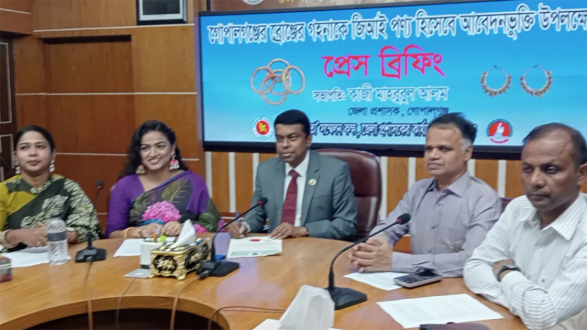 গোপালগঞ্জের ব্রোঞ্জ গহনাকে জিআই পণ্য হিসেবে আবেদন উপলক্ষ্যে প্রেস ব্রিফিং। ছবি: সংগৃহীত