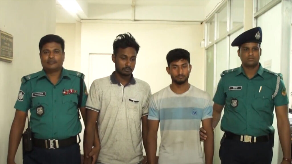 আটককৃতরা হলেন, ড্রাইভার ফাহাদ হোসেন ও হেলপার সাফাত হোসেন।
