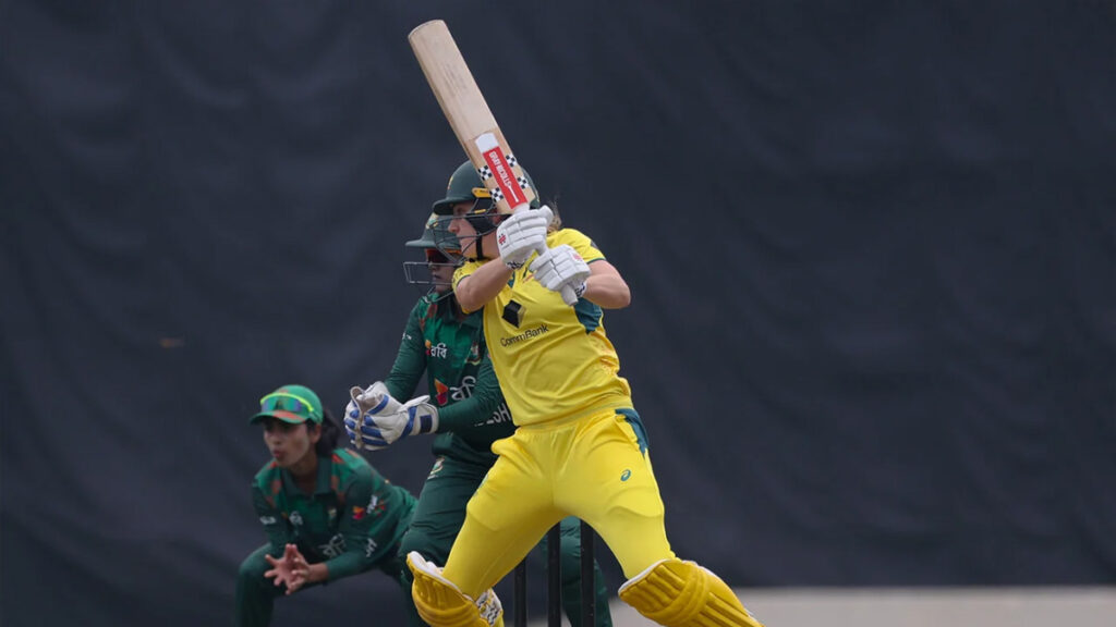নাহিদা আক্তার আক্রমণে এসেই ফেরান তাহলিয়া ম্যাকগ্রাকে। দারুণ এক সুইংয়ের ফলে পরাস্ত এই ব্যাটার। লেগবিফোরে ফিরতে হয় সময়ের অন্যতম সেরা এই খেলোয়াড়কে। এরপরেই অবশ্য অ্যাশলি গার্ডনারকে নিয়ে বড় জুটি গড়েন অভিজ্ঞ বেথ মুনি।
