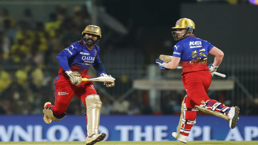 ইনিংসের পঞ্চম ওভারে বোলিংয়ে এসে ফাফ ডু প্লেসিকে প্যাভিলিয়নে ফেরার বাংলাদেশি কাটার মাস্টার মোস্তাফিজুর রহমান। দলীয় ৪১ ও ব্যক্তিগত ৩৫ রানে আউট হন ফাফ। সেই ওভারেই মোস্তাফিজুরের আরেক ডেলিভারিতে ধোনির হাতে ক্যাচ দিয়ে শূন্য রানে সাজঘরে ফেরেন রজত পাতিদার। এরপরে ক্রিজে এসেই দীপক চাহারের বল মোকাবেলা করতে গিয়ে শূন্য আউট হন গ্লেন ম্যাক্সওয়েল। ৪২ রানে ৩ উইকেট হারিয়ে চাপে পরে বেঙ্গালুরু।