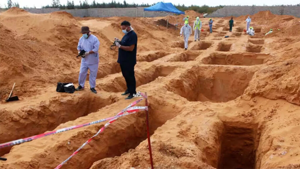 দেশটির দক্ষিণ-পশ্চিম অঞ্চলে পাওয়া গেছে কবরটি। তবে এখনও পাওয়া যায়নি নিহতদের নাম-পরিচয়। কীভাবে হয়েছে তাদের মৃত্যু, সে ব্যাপারেও জানা যায়নি কোনো তথ্য। তবে আইওএম ধারণা করছে, মরুভূমি হয়ে ভূমধ্যসাগরের দিকে যাওয়ার সময় তাদের মৃত্যু হয়েছে। ইউরোপে যেতে লিবিয়া একটি গুরুত্বপূর্ণ স্থান।