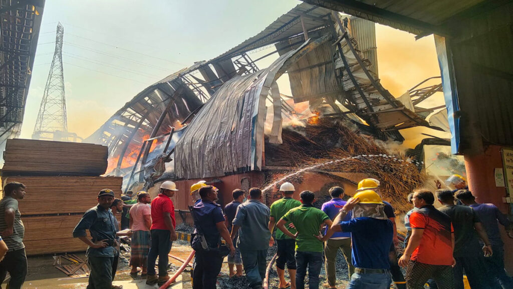 প্রায় ছয় ঘণ্টা পেরিয়ে গেলেও নিয়ন্ত্রণে আসেনি মুন্সিগঞ্জের গজারিয়া উপজেলার জামালদি এলাকার একটি কারখানার গোডাউনের আগুন। রোববার (২৪ মার্চ) সন্ধ্যা ৭টা পর্যন্ত আগুন নিয়ন্ত্রণে আসার খবর পাওয়া যায়নি।