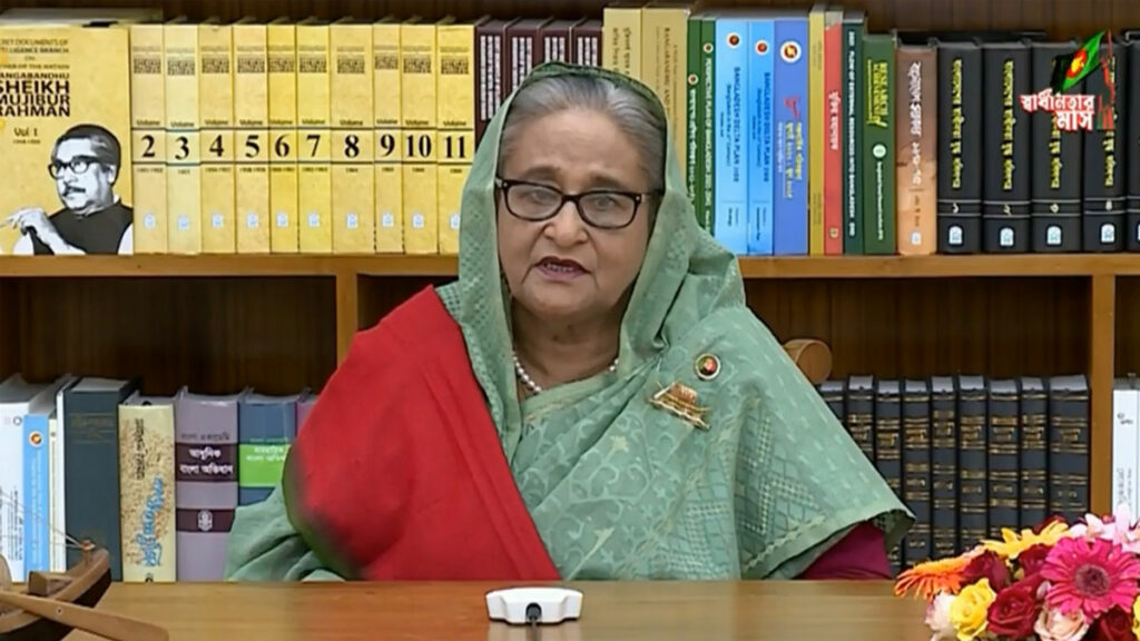 প্রধানমন্ত্রী বলেন, স্বাধীনতা দিবসের এই মাহেন্দ্রক্ষণে আমি গভীর শ্রদ্ধার সঙ্গে স্মরণ করছি সর্বকালের সর্বশ্রেষ্ঠ বাঙালি, জাতির পিতা বঙ্গবন্ধু শেখ মুজিবুর রহমানকে। যার অবিসংবাদিত নেতৃত্ব এবং অপরিসীম আত্মত্যাগের বিনিময়ে আমরা অর্জন করেছি মহান স্বাধীনতা। স্মরণ করছি জাতীয় চার নেতা— সৈয়দ নজরুল ইসলাম, তাজউদ্দীন আহমদ, ক্যাপ্টেন এম মনসুর আলী ও এএইচএম কামারুজ্জামানকে। শ্রদ্ধা জানাচ্ছি মুক্তিযুদ্ধের ৩০ লাখ শহীদ এবং ২ লাখ নির্যাতিত মা-বোনকে। বীর মুক্তিযোদ্ধাদের প্রতি গভীর শ্রদ্ধা ও সালাম।