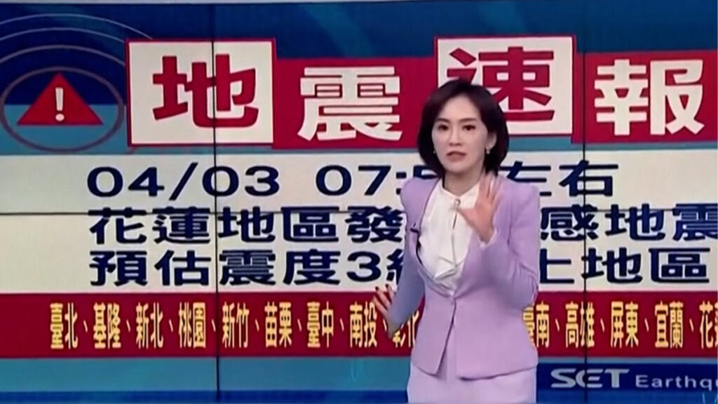 এসবের তোয়াক্কা না করে সরাসরি জানান ভূমিকম্পের খবর। এ পরিস্থিতি তৈরি হয় তাইওয়ানের ভূমিকম্পনের সময়। বেশকিছু টেলিভিশন চ্যানেলেই দেখা গেছে এ দৃশ্য। নেটিজেনদের প্রশংসায় ভাসছেন সংবাদ পাঠকরা।