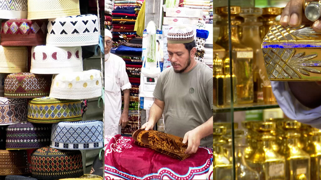 এই তিন পণ্যের মধ্যে বিক্রির তালিকায় শীর্ষে আছে টুপি। ক্রেতাদের পছন্দের তালিকায় আছে সিন্ধি, রুমি, গুজরাটি, পাথর বাধাই সিন্ধি টুপি ও জিন্নাহ টুপি। ৮০০ থেকে ৩ হাজায় টাকায় মিলছে আমদানি করা এসব টুপি। এছাড়া ১০০ থেকে হাজার টাকার মধ্যে আছে বাংলাদেশি টুপি।
