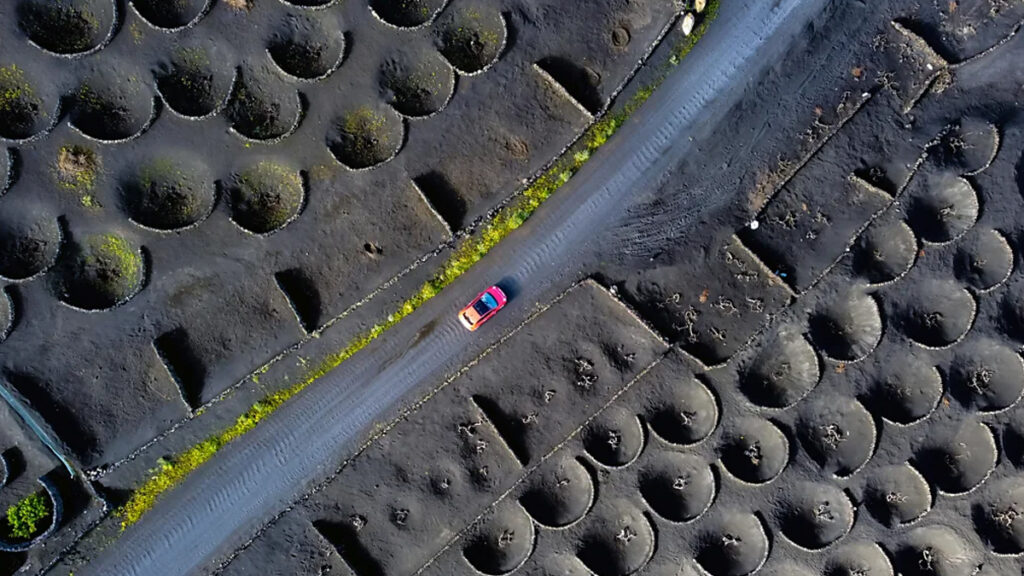 দূর থেকে দেখলে দ্বীপটির আগ্নেয়গিরির ছাইয়ের স্তরে দেখা মিলবে প্রাণের সঞ্চার। জেট-কালো ভূখণ্ডটি প্রথমে মনে হবে কেউ বুড়ো আঙ্গুল দিয়ে চেপে নকশা করেছে। কিন্তু একটু কাছে গেলেই দেখা যাবে, প্রতিটি গর্তে রয়েছে চারা গাছ। তাও আবার আঙ্গুরের। আগ্নেয়গিরির ছাইয়ের স্তরের এমন দৃশ্য নজর কাটবে প্রকৃতি প্রেমিকদেরও।