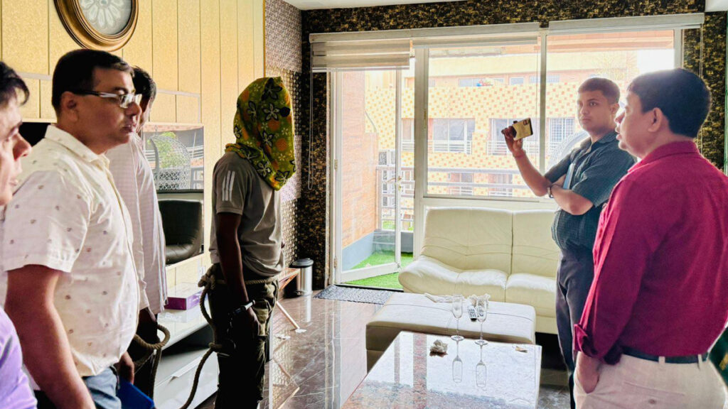 সোমবার (২৭ মে) সকালে নিউ টাউনের অভিজাত ‘সঞ্জীবা গার্ডেন’-এ প্রবেশ করে বাংলাদেশের গোয়েন্দা প্রতিনিধি দল। ডিবিপ্রধান হারুন অর রশীদের নেতৃত্বে ৩ সদস্যের গোয়েন্দা প্রতিনিধি দল সঞ্জীবা গার্ডেনে আসামি জিহাদকে নিয়ে ঘণ্টাখানেক অবস্থান করে। পরে সেখান থেকে ডিবির প্রতিনিধিরা আসামি জিহাদের দেখানো স্পট ভিজিট করেন।