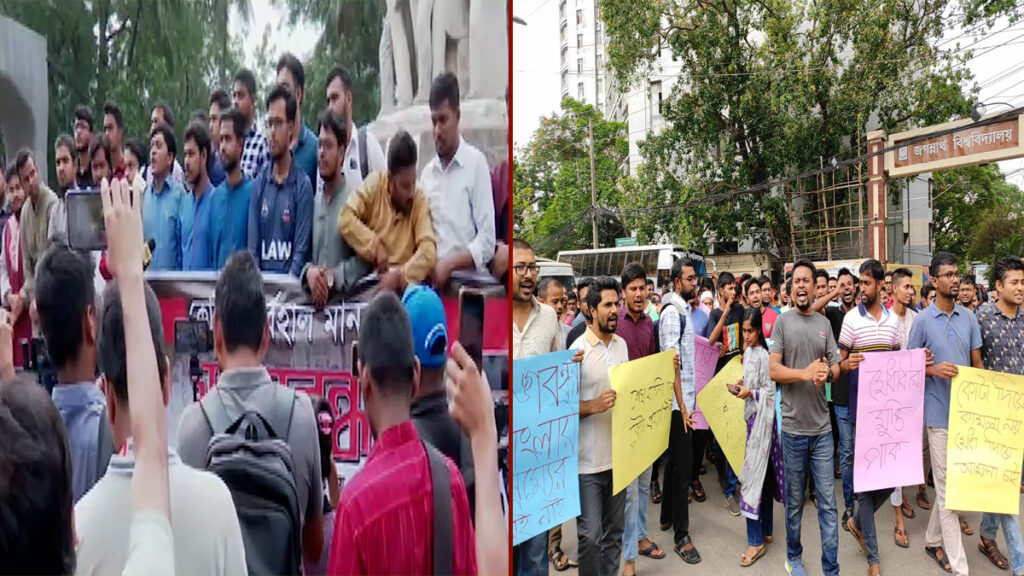 সরেজমিন দেখা যায়, ঢাকা বিশ্ববিদ্যালয়ের রাজু ভাস্কর্যের সামনে ‘বিক্ষুব্ধ ছাত্র সমাজে’র ব্যানারে এ প্রতিবাদ কর্মসূচি অনুষ্ঠিত হয়। শিক্ষার্থীরা দাবি করেন, রায় প্রদাণের ক্ষেত্রে ২০১৮ সালের কোটা সংস্কার আন্দোলনকে আমলে নেননি হাইকোর্ট। তাই আদালতের এই রায়কে প্রত্যাখান করছে সাধারণ শিক্ষার্থীরা।