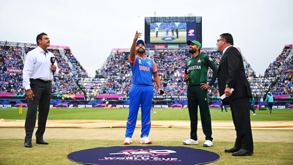 টি-টোয়েন্টি বিশ্বকাপের সবচেয়ে আকর্ষণীয় ম্যাচে মুখোমুখি হয়েছে দুই চিরপ্রতিদ্বন্দ্বী ভারত ও পাকিস্তান। বৃষ্টির বাগড়ায় নির্ধারিত সময়ের ৩০ মিনিট পর টস হয়। যেখানে টস জিতে ভারতকে ব্যাটিংয়ের আমন্ত্রণ জানিয়েছেন পাকিস্তানের অধিনায়ক বাবর আজম।