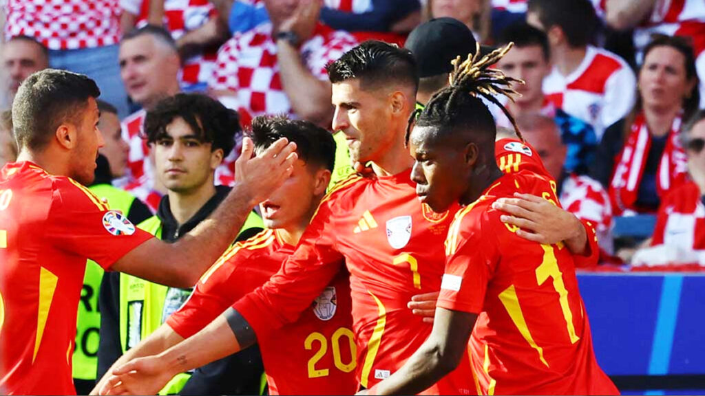 উয়েফা ইউরোতে গ্রুপ বি’র ম্যাচে নিজেদের প্রথম ম্যাচে ক্রোয়েশিয়াকে ৩-০ গোলে হারিয়ে শুভ সূচনা করেছে তিনবারের চ্যাম্পিয়ন স্পেন। শনিবার (১৫ জুন) রাতে বার্লিনের অলিম্পিয়াস্টেডিয়নে মোরাতা, ফাবিয়ান রুইস ও দানি কারভাহালের গোলে সহজ জয় পায় স্প্যানিশরা। তিনটি গোলই আসে ম্যাচের প্রথামার্ধে।