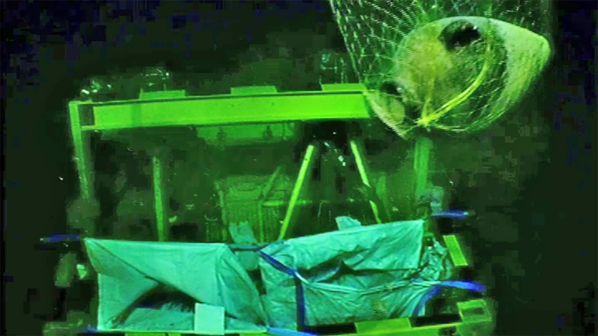 ১.৮ কিলোমিটার গভীরতা থেকে একটি 'কেনানাইট জার' উদ্ধার করা হচ্ছে। ছবি: এনার্জিয়ান
