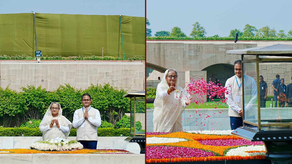 ভারতীয় স্বাধীনতা আন্দোলনের অন্যতম চালিকা শক্তি মহাত্মা গান্ধীর সমাধিতে শ্রদ্ধা জানিয়েছেন বাংলাদেশের সরকারপ্রধান শেখ হাসিনা। শনিবার (২২ জুন) স্থানীয় সময় ১০টার দিকে দিল্লির রাজঘাটে অবস্থিত সমাধিতে শ্রদ্ধা জানানো শেষে সেখানে থাকা পরিদর্শন বইয়ে স্বাক্ষর করেন তিনি।
