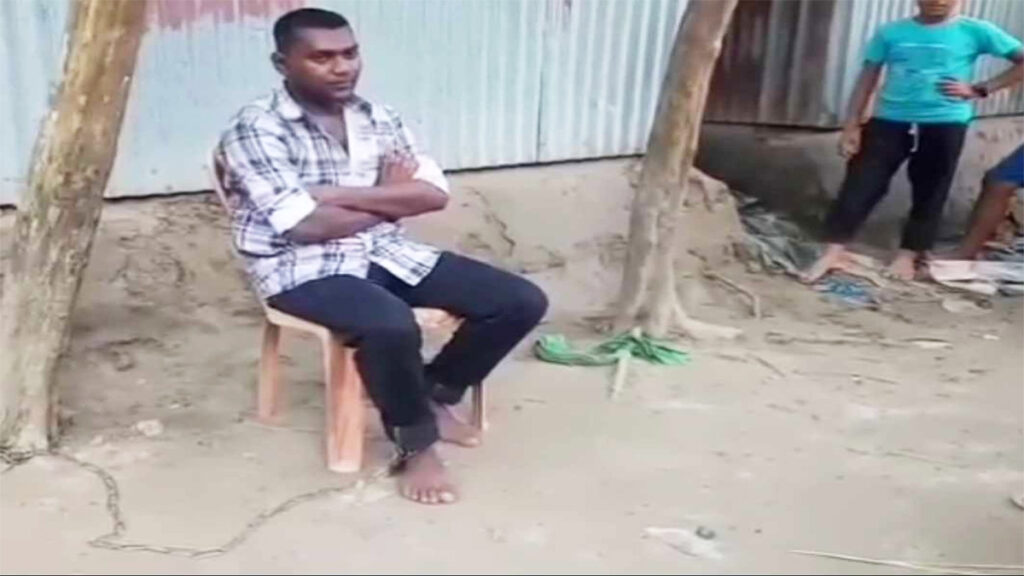 আটক হওয়ার পর শেকল দিয়ে একটি গাছের সঙ্গে বেঁধে রাখা হয় শিপনকে। প্রতারক শিপনের বাড়ি জামালপুরের দেওয়ানগঞ্জ উপজেলার খড়মা গ্রামের মোন্নাফ আলীর ছেলে।