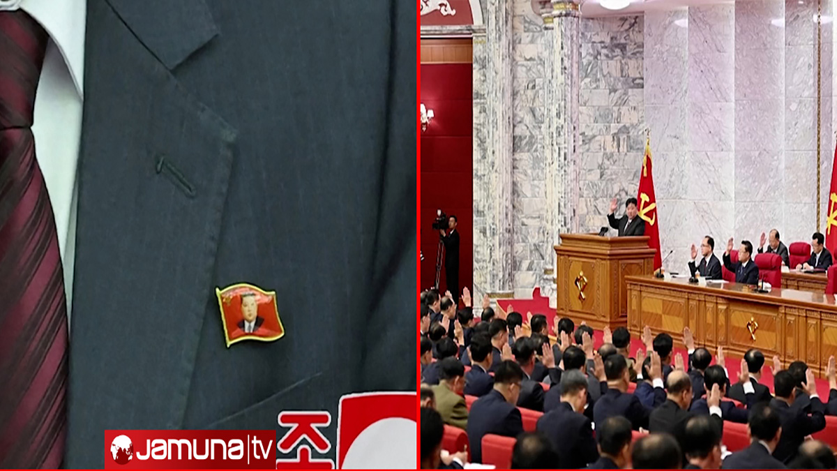 রোববার (৩০ জুন) দেশটির রাষ্ট্রীয় গণমাধ্যম কেসিএনএতে প্রকাশ করা হয়েছে ছবিগুলো। ওয়ার্কার্স পার্টি অব কোরিয়ার দশম বৈঠকে নেতাদের এমন কোট পিন পরতে দেখা গিয়েছে। যেখানে দেশের পতাকার সঙ্গে মিলিয়ে লাল রঙের মাঝে বসানো হয়েছে কিম জং উনের ছবি।