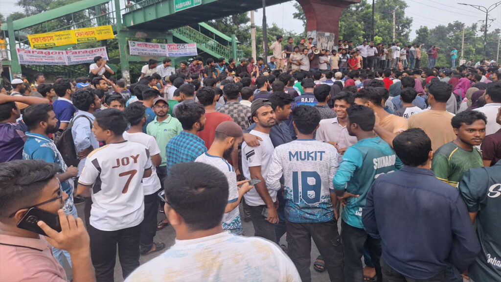 এর আগে, দুপুর আড়াইটার দিকে বিশ্ববিদ্যালয়ের প্রধান ফটক সংলগ্ন ঢাকা-আরিচা মহাসড়কে অবস্থান নেয় পুলিশ। এ সময় বিশ্ববিদ্যালয়ের প্রধান ফটকে তালা দেয়া হয়। পরে সাড়ে ৩টার দিকে বিশ্ববিদ্যালয়ের কেন্দ্রীয় গ্রন্থাগারের সামনে থেকে মিছিল নিয়ে বের হন শিক্ষার্থীরা। পরে মিছিলটি বিশ্ববিদ্যালয়ের প্রধান ফটকে পৌঁছালে বিশ্ববিদ্যালয়ের প্রক্টরিয়াল টিম ও পুলিশের বাঁধার মুখে পড়ে। এক পর্যায়ে প্রধান ফটকের তালা ভেঙে ও পুলিশের বাঁধা উপেক্ষা করে মহাসড়কে অবস্থান নেন শিক্ষার্থীরা। এ সময় শিক্ষার্থীরা সড়কের দুই পাশের যান চলাচল বন্ধ করে দেয়।