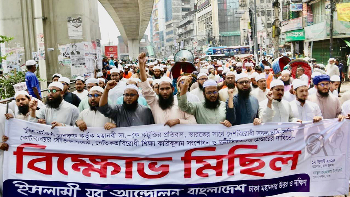 এ সময় কোটাব্যবস্থা সংস্কার, নৈতিকতাবিরোধী শিক্ষা কারিকুলাম সংশোধন ও দুর্নীতিবাজদের গ্রেফতারের দাবি জানান বিক্ষোভকারীরা। একই সাথে বিশ্বনবীকে নিয়ে কটুক্তি করা পুলিশ কর্মকর্তার শাস্তি দাবি করেন তারা।