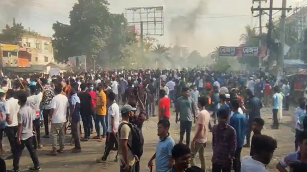 এর আগে বিকেল সাড়ে তিনটা থেকে শহরের জেলখানামোড়-ভেলানগরে পুলিশের সাথে দফায় দফায় সংঘর্ষে অন্তত অর্ধশত আন্দোলনকারী আহত হয়েছে। পরিস্থিতি নিয়ন্ত্রনে আনতে বিপুল পরিমান কাঁদানি গ্যাস ও রাবার বুলেট ছুড়েছে পুলিশ। এসময় পুলিশকে হটাতে ইট-পাটকেল নিক্ষেপ করে আন্দোলনরত শিক্ষার্থীরা। সড়কে অগ্নিসংযোগের পাশাপাশি সড়ক দখলে নিতে স্লোগানে স্লোগানে মুখরিত হয় হাজারো শিক্ষার্থী।