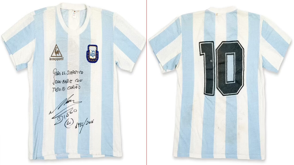 আর্জেন্টাইন ফুটবল কিংবদন্তি দিয়েগো ম্যারাডোনার ১৯৮৬ বিশ্বকাপের জার্সি নিলামে তোলা হয়েছে। খেলাধুলায় বিরল স্মারকগুলো নিলামে তোলার এ উদ্যোগ নিলামকারী প্রতিষ্ঠান সথেবির। এটি নিউইয়র্কে নিলামে তোলা হয়েছে বলে জানিয়েছে সথেবির।