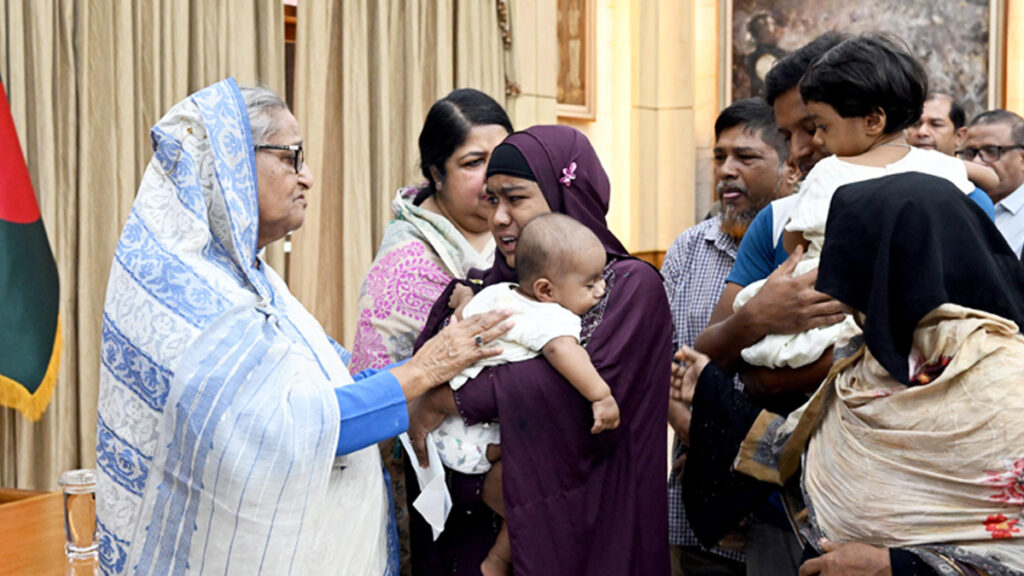 প্রধানমন্ত্রী তাদের সান্ত্বনা দিয়ে বলেন, আমাকে দেখেন, আমি কত শোক নিয়ে বেঁচে আছি। এক রাতে বাবা-মা, ভাইসহ নিজের স্বজন হারানোর কথা উল্লেখ করে শেখ হাসিনা বলেন, আপনাদের সান্ত্বনা দেয়ার ভাষা নেই। আপনাদের কষ্ট আমি বুঝি।