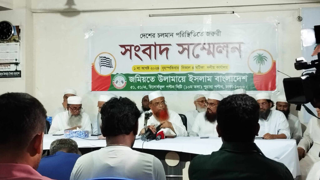 জমিয়তে উলামায়ে ইসলাম বাংলাদেশের মহাসচিব মঞ্জরুল ইসলাম আফেন্দি বলেছেন, শিক্ষার্থীদের ন্যায়সঙ্গত ও শান্তিপূর্ণ আন্দোলনকে আজকের এই জটিল পর্যায়ে আনার জন্য সরকারই দায়ী। বৃহস্পতিবার (১ আগষ্ট) বিকেলে রাজধানীর পুরোনো পল্টনে দলের কার্যালয়ে এক সংবাদ সম্মেলনে এ কথা বলেন তিনি।
