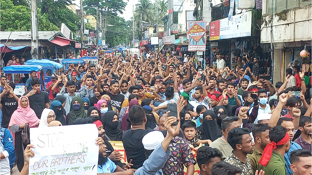 কোটা সংস্কার আন্দোলনে নিহত শিক্ষার্থী-জনতা হত্যার বিচার ও গণহারে শিক্ষার্থী গ্রেফতারের প্রতিবাদে সুনামগঞ্জে বিক্ষোভ মিছিল করেছে সাধারণ শিক্ষার্থী ও জনতা। মিছিলে হত্যার বিচার চেয়ে সরকার বিরোধী নানান স্লোগান দেন বিক্ষোভকারীরা। এ সময় বাঁধা না দিয়ে বিক্ষোভকারীদের সামনে-পেছনে থেকে নিরাপত্তা দিয়ে সহযোগিতা করতে দেখা যায় আইনশৃঙ্খলা বাহিনীকে।