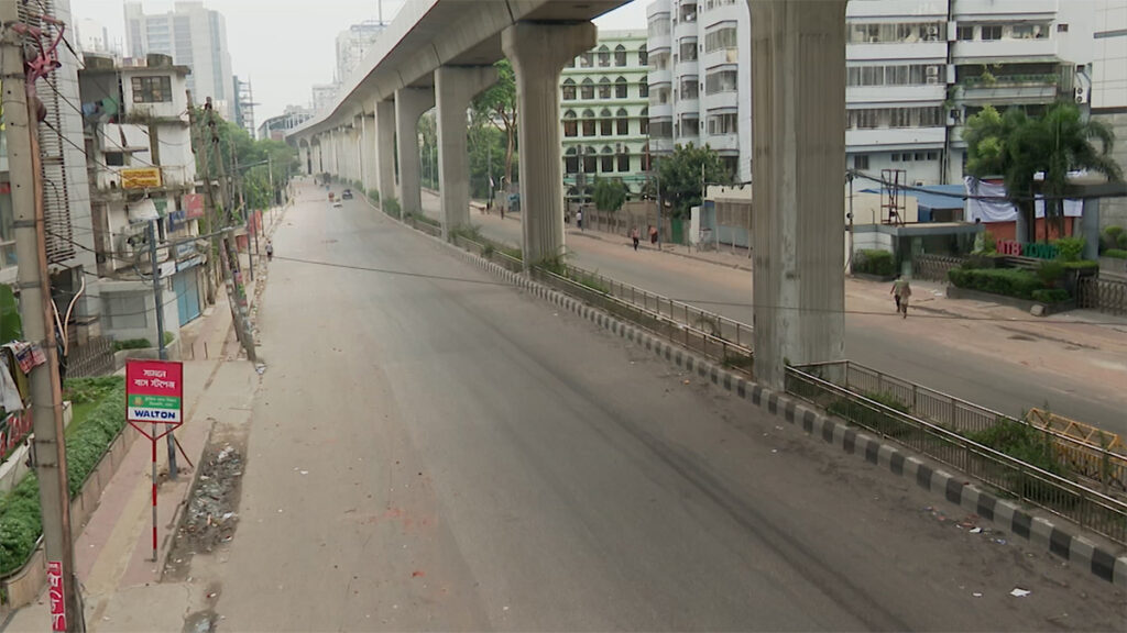 রাজধানীর পরিবেশ থমথমে অবস্থা বিরাজ করছে। রাস্তায় কোনো গণপরিবহনও দেখা যায়নি। রাতেও রাজধানীজুড়ে ছিল থমথমে পরিস্থিতি। বিভিন্ন গুরুত্বপূর্ণ পয়েন্টে বাড়ানো হয়েছে সেনাবাহিনীর টহল এবং চেকপোস্ট। উদ্বেগ উৎকণ্ঠা নিয়ে জরুরি কাজে সেরেছেন অনেকে।