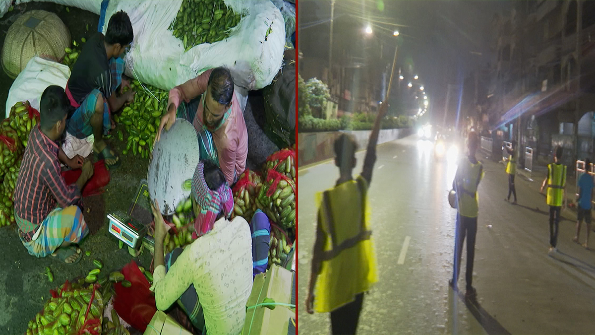বাজার মনিটরিং ও ট্রাফিক কন্ট্রোলে গভীর রাতেও সড়কে শিক্ষার্থীরা