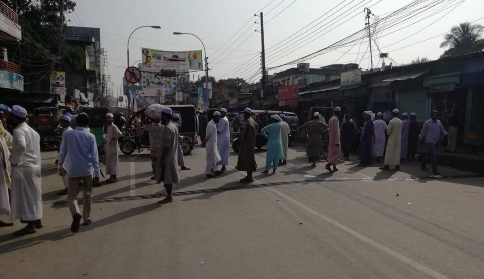তাবলিগের সঙ্গে মারামারির পর আজ শনিবার ব্রাহ্মণবাড়িয়া শহরের প্রধান সড়ক ৩ ঘন্টা অবরোধ করেছে কওমী মাদ্রাসার ছাত্ররা। সদর সার্কেল অতিরিক্ত পুলিশ সুপার রেজাউল কবীরের অপসারণসহ ৫ দফা দাবিতে এ অবরোধ করে তারা।
