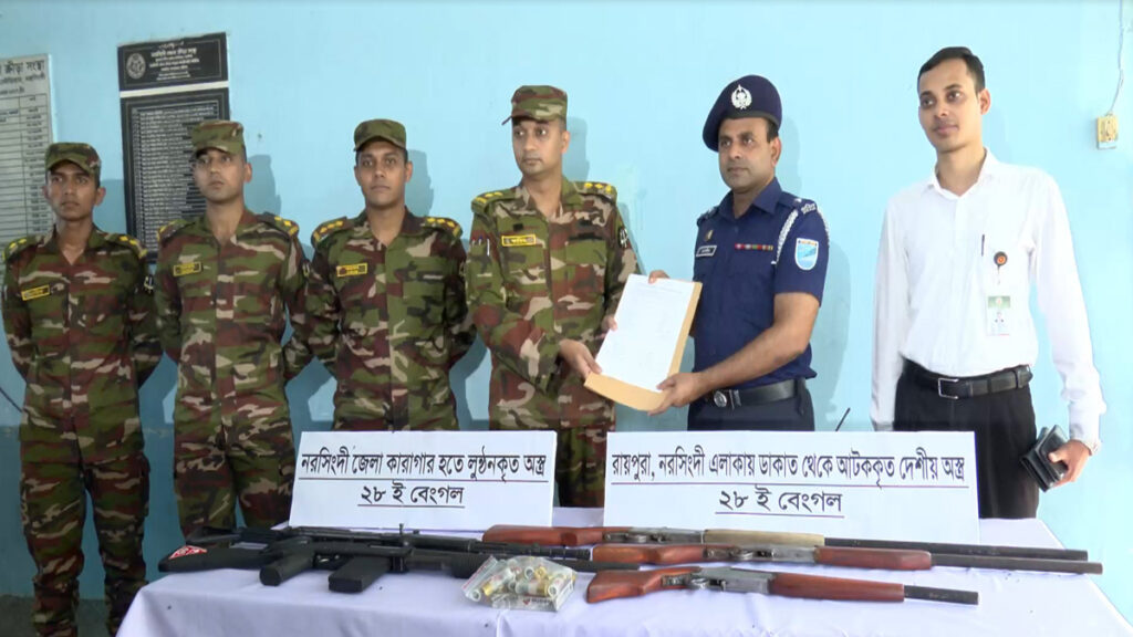 ১৮ আগস্ট (রোববার) দুপুরে নরসিংদী ক্যাম্পে ২৮ ইস্ট বেঙ্গল সেনাবাহিনীর লেফটেন্যান্ট কর্নেল মোহাম্মদ ফাহিম মাহবুব এসব উদ্ধারকৃত অস্ত্র ও গুলি জেলা পুলিশের কাছে হস্তান্তর করেন।