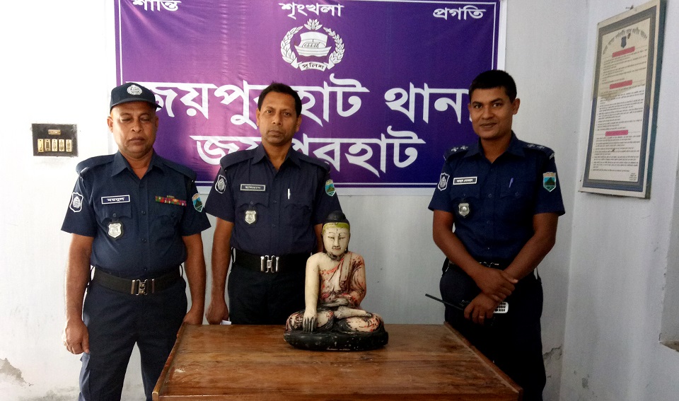 জয়পুরহাটে প্রায় ২ কোটি টাকা মূল্যের ৩২ কেজি ওজনের একটি সাদা পাথরের বৌদ্ধ মূর্তিসহ দুই মূর্তি ব্যবসায়ীকে আটক করেছে পুলিশ। আটককৃত মূর্তি ব্যবাসায়ীরা জয়পুরহাটের পাচঁবিবি উপজেলার মহব্বতপুর গ্রামের আজিম মদ্দিনের ছেলে মুনসুর আলী ও আক্কেলপুর উপজেলার ভান্ডারীপাড়া গ্রামের মৃত রামলালের ছেলে অখিল মন্ডল।