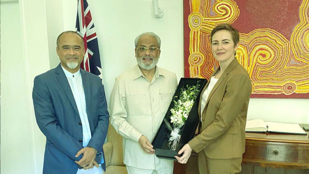 বাংলাদেশে নিযুক্ত অস্ট্রেলিয়ান ভারপ্রাপ্ত হাইকমিশনার মিসেস নারদিয়া সিম্পসনের সঙ্গে সৌজন্য সাক্ষাৎ করেছেন জাতীয় পার্টি চেয়ারম্যান গোলাম মোহাম্মদ কাদের। বৈঠক শেষে জিএম কাদের আশা প্রকাশ করে বলেন, আগামী দিনেও বাংলাদেশের অগ্রগতিতে অস্ট্রেলিয়া পাশে থাকবে।