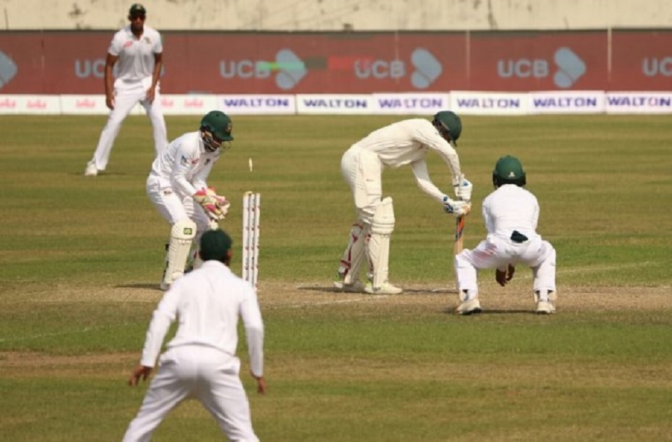 এর আগে চতুর্থ দিন শেষ সেশনে ৪৪৩ রানের লক্ষ্য তাড়া করতে নেমে ৭০ রানের মধ্যে জিম্বাবুয়ের দুই ওপেনার হ্যামিল্টন মাসাকাদজা ও ব্যায়ান চারিকে সাজঘরে পাঠান মেহেদী হাসান মিরাজ ও তাইজুল ইসলাম। প্রথম ইনিংস ৩০৪ রানে অলআউট হয়েছিল জিম্বাবুয়ে আর বাংলাদেশ দুই ইনিংসে করেছে ৭ উইকেটে ৫২২ ও ৬ উইকেটে ২২৪।